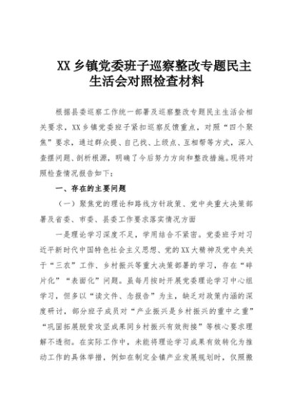 【七哥公文】2025年:XX乡镇党委班子巡察整改专题民主生活会对照检查材料+更多免费公文+VX:QiGeGongWen2024