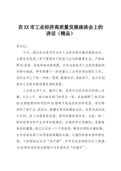 / 【七哥公文】2025年:在XX市工业经济高质量发展座谈会上的讲话(精品)+更多免费公文+VX:QiGeGongWen2024
