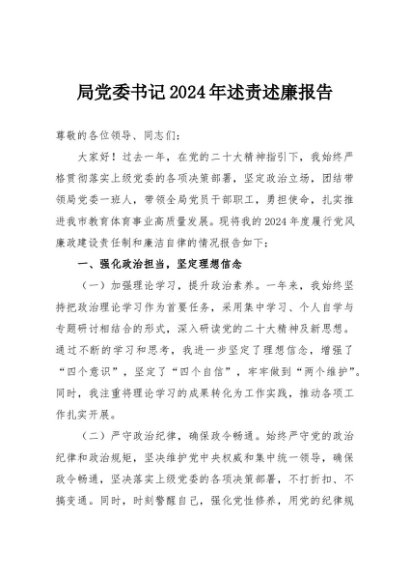 / 【七哥公文】2025年:局党委书记2024年述责述廉报告+更多免费公文+VX:QiGeGongWen2024