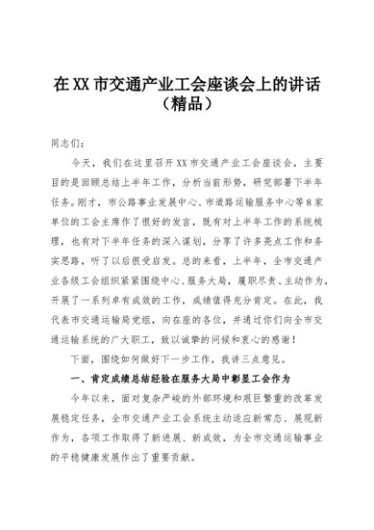 / 【七哥公文】2025年:在XX市交通产业工会座谈会上的讲话(精品)+更多免费公文+VX:QiGeGongWen2024