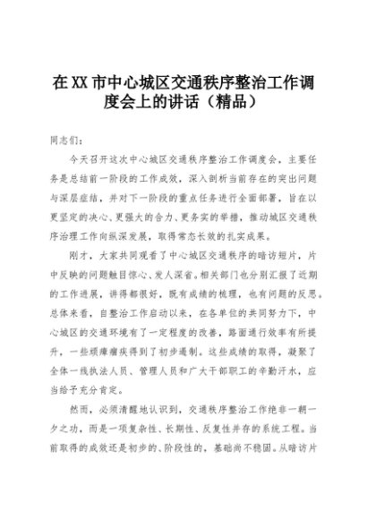 【七哥公文】2025年:在XX市中心城区交通秩序整治工作调度会上的讲话(精品)+更多免费公文+VX:QiGeGongWen2024