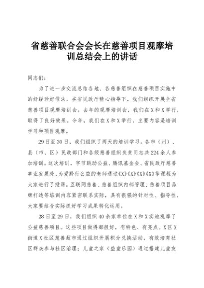 / 【七哥公文】2025年:省慈善联合会会长在慈善项目观摩培训总结会上的讲话+更多免费公文+VX:QiGeGongWen2024