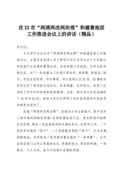 【七哥公文】2025年:在XX市“两清两改两治理”和避暑旅居工作推进会议上的讲话(精品)+更多免费公文+VX:QiGeGongWen2024