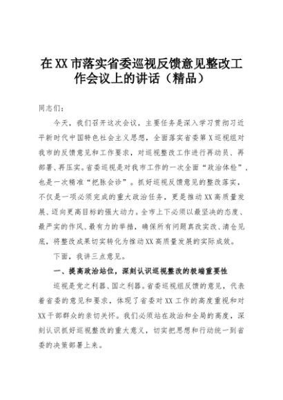 【七哥公文】2025年:在XX市落实省委巡视反馈意见整改工作会议上的讲话(精品)+更多免费公文+VX:QiGeGongWen2024