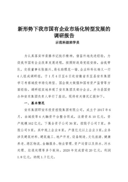 / 【七哥公文】2025年:新形势下我市国有企业市场化转型发展的调研报告+更多免费公文+VX:QiGeGongWen2024