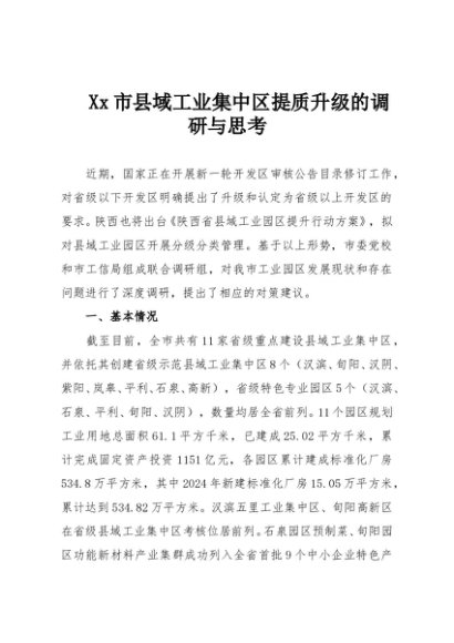 / 【七哥公文】2025年:Xx市县域工业集中区提质升级的调研与思考+更多免费公文+VX:QiGeGongWen2024