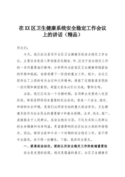 【七哥公文】2025年:在XX区卫生健康系统安全稳定工作会议上的讲话(精品)+更多免费公文+VX:QiGeGongWen2024