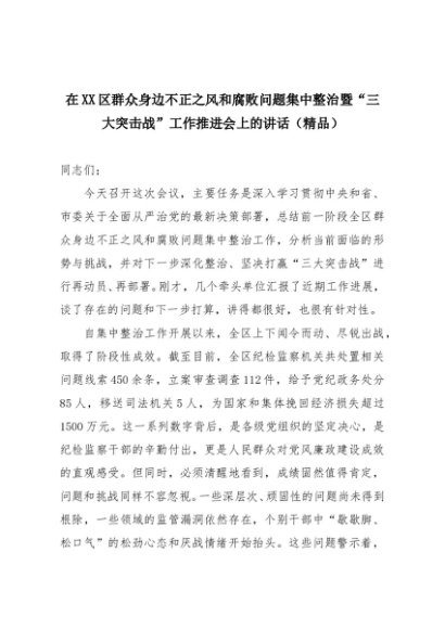 【七哥公文】2025年:在XX区群众身边不正之风和腐败问题集中整治暨“三大突击战”工作推进会上的讲话(精品)+更多免费公文+VX:QiGeGongWen2024