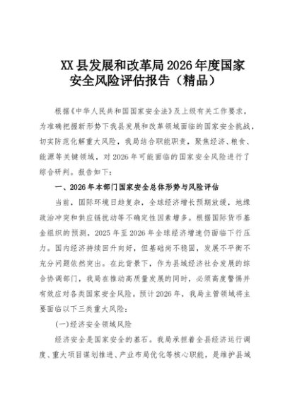 【七哥公文】2025年:XX县发展和改革局2026年度国家安全风险评估报告(精品)+更多免费公文+VX:QiGeGongWen2024