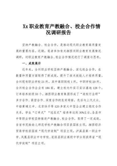 【七哥公文】2025年:Xx职业教育产教融合、校企合作情况调研报告+更多免费公文+VX:QiGeGongWen2024