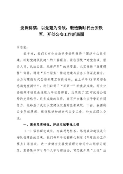 【七哥公文】2025年:党课讲稿:以党建为引领,锻造新时代公安铁军,开创公安工作新局面+更多免费公文+VX:QiGeGongWen2024