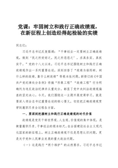 【七哥公文】2025年:党课:牢固树立和践行正确政绩观,在新征程上创造经得起检验的实绩+更多免费公文+VX:QiGeGongWen2024