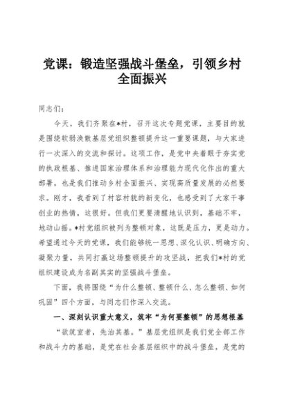 / 【七哥公文】2025年:党课:锻造坚强战斗堡垒,引领乡村全面振兴+更多免费公文+VX:QiGeGongWen2024