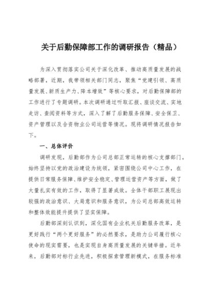 / 【七哥公文】2025年:关于后勤保障部工作的调研报告(精品)+更多免费公文+VX:QiGeGongWen2024