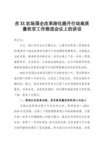 【七哥公文】2025年:在XX农场国企改革深化提升行动高质量收官工作推进会议上的讲话+更多免费公文+VX:QiGeGongWen2024