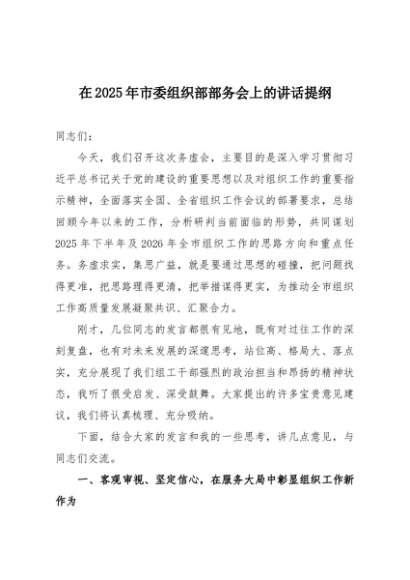 / 【七哥公文】2025年:在2025年市委组织部部务会上的讲话提纲+更多免费公文+VX:QiGeGongWen2024