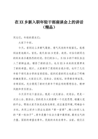 / 【七哥公文】2025年:在XX乡新入职年轻干部座谈会上的讲话(精品)+更多免费公文+VX:QiGeGongWen2024