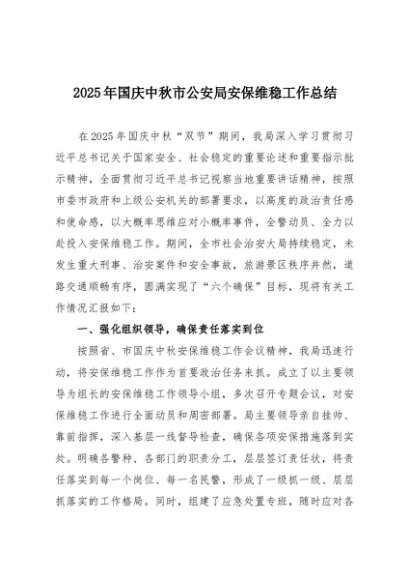 / 【七哥公文】2025年:2025年国庆中秋市公安局安保维稳工作总结+更多免费公文+VX:QiGeGongWen2024