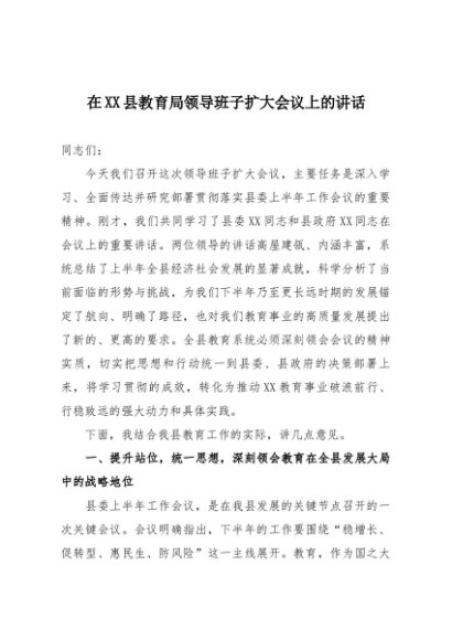 / 【七哥公文】2025年:在XX县教育局领导班子扩大会议上的讲话+更多免费公文+VX:QiGeGongWen2024