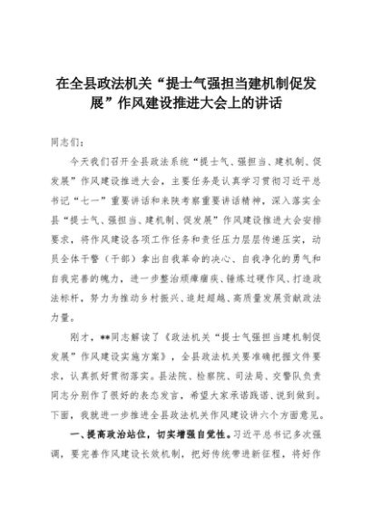 【七哥公文】2025年:在全县政法机关“提士气强担当建机制促发展”作风建设推进大会上的讲话+更多免费公文+VX:QiGeGongWen2024