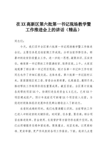 【七哥公文】2025年:在XX高新区第六批第一书记现场教学暨工作推进会上的讲话(精品)+更多免费公文+VX:QiGeGongWen2024