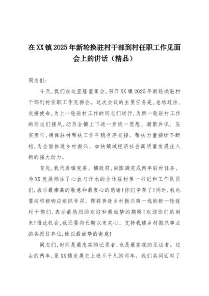 【七哥公文】2025年:在XX镇2025年新轮换驻村干部到村任职工作见面会上的讲话(精品)+更多免费公文+VX:QiGeGongWen2024