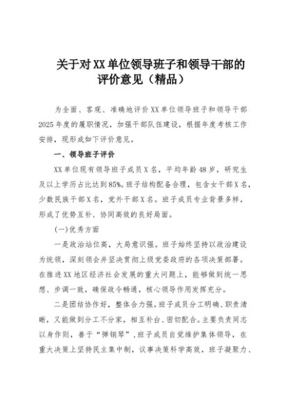 【七哥公文】2025年:关于对XX单位领导班子和领导干部的评价意见(精品)+更多免费公文+VX:QiGeGongWen2024