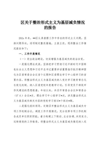 / 【七哥公文】2025年:区关于整治形式主义为基层减负情况的报告+更多免费公文+VX:QiGeGongWen2024