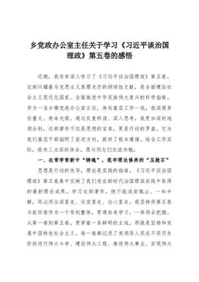 【七哥公文】2025年:乡党政办公室主任关于学习《习近平谈治国理政》第五卷的感悟+更多免费公文+VX:QiGeGongWen2024