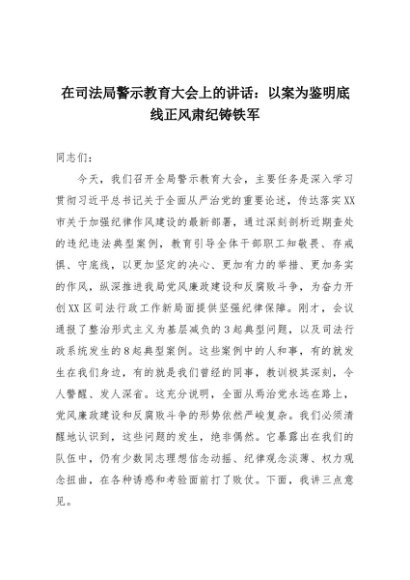 【七哥公文】2025年:在司法局警示教育大会上的讲话:以案为鉴明底线正风肃纪铸铁军+更多免费公文+VX:QiGeGongWen2024