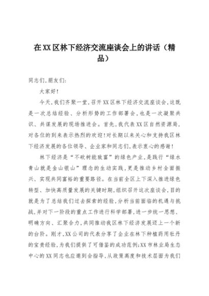 / 【七哥公文】2025年:在XX区林下经济交流座谈会上的讲话(精品)+更多免费公文+VX:QiGeGongWen2024
