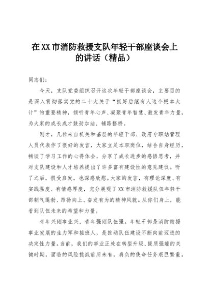【七哥公文】2025年:在XX市消防救援支队年轻干部座谈会上的讲话(精品)+更多免费公文+VX:QiGeGongWen2024