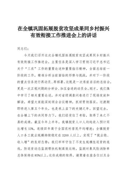 【七哥公文】2025年:在全镇巩固拓展脱贫攻坚成果同乡村振兴有效衔接工作推进会上的讲话+更多免费公文+VX:QiGeGongWen2024