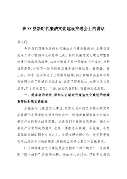/ 【七哥公文】2025年:在XX县新时代廉洁文化建设推进会上的讲话+更多免费公文+VX:QiGeGongWen2024