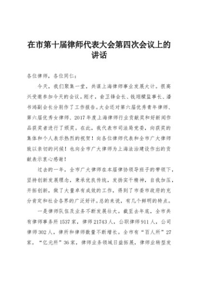 / 【七哥公文】2025年:在市第十届律师代表大会第四次会议上的讲话+更多免费公文+VX:QiGeGongWen2024