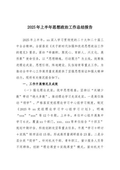/ 【七哥公文】2025年:2025年上半年思想政治工作总结报告+更多免费公文+VX:QiGeGongWen2024