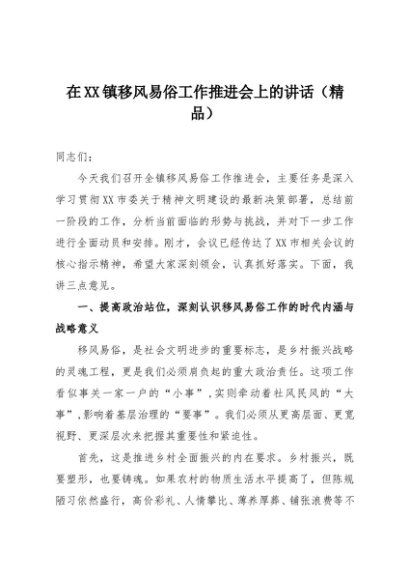 / 【七哥公文】2025年:在XX镇移风易俗工作推进会上的讲话(精品)+更多免费公文+VX:QiGeGongWen2024