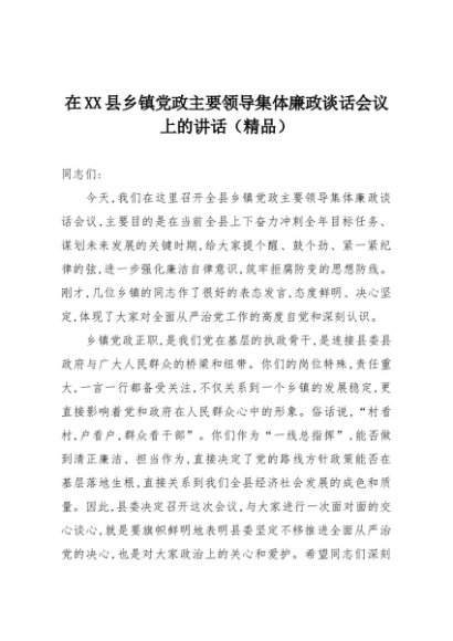 【七哥公文】2025年:在XX县乡镇党政主要领导集体廉政谈话会议上的讲话(精品)+更多免费公文+VX:QiGeGongWen2024