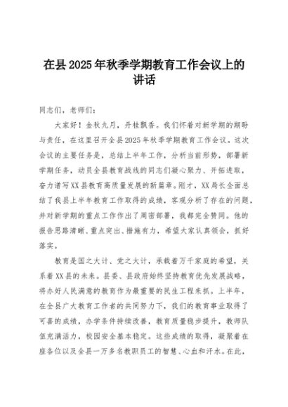 / 【七哥公文】2025年:在县2025年秋季学期教育工作会议上的讲话+更多免费公文+VX:QiGeGongWen2024