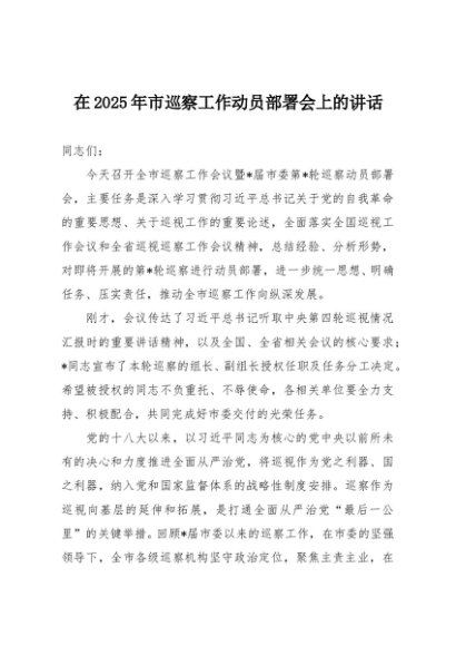 / 【七哥公文】2025年:在2025年市巡察工作动员部署会上的讲话+更多免费公文+VX:QiGeGongWen2024