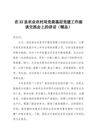 【七哥公文】2025年:在XX县农业农村局党委基层党建工作座谈交流会上的讲话(精品)+更多免费公文+VX:QiGeGongWen2024