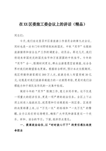 【七哥公文】2025年:在XX区委旅工委会议上的讲话(精品)+更多免费公文+VX:QiGeGongWen2024