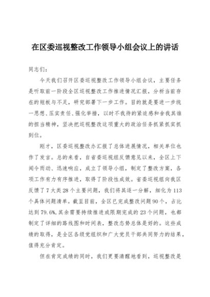 / 【七哥公文】2025年:在区委巡视整改工作领导小组会议上的讲话+更多免费公文+VX:QiGeGongWen2024