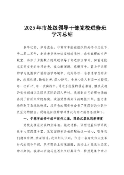 【七哥公文】2025年:2025年市处级领导干部党校进修班学习总结+更多免费公文+VX:QiGeGongWen2024