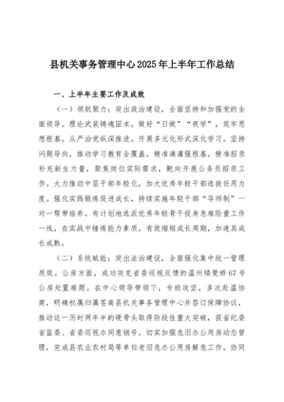 / 【七哥公文】2025年:县机关事务管理中心2025年上半年工作总结+更多免费公文+VX:QiGeGongWen2024