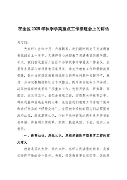 / 【七哥公文】2025年:在全区2025年秋季学期重点工作推进会上的讲话+更多免费公文+VX:QiGeGongWen2024