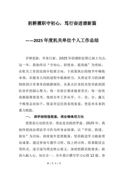 【七哥公文】2025年:2025年度机关单位个人工作总结:躬耕履职守初心,笃行奋进谱新篇+更多免费公文+VX:QiGeGongWen2024