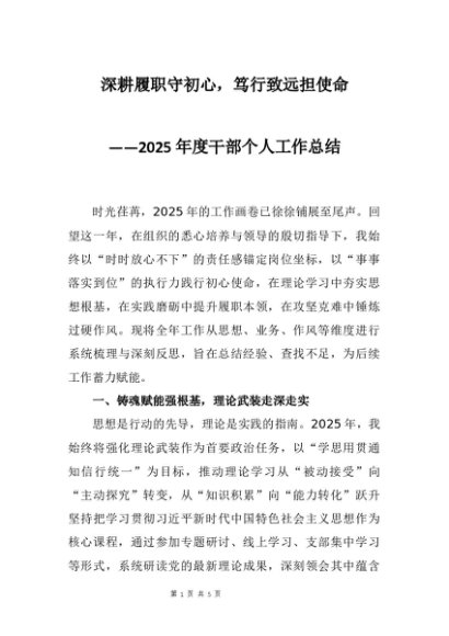 【七哥公文】2025年:2025年度干部个人工作总结:深耕履职守初心,笃行致远担使命+更多免费公文+VX:QiGeGongWen2024