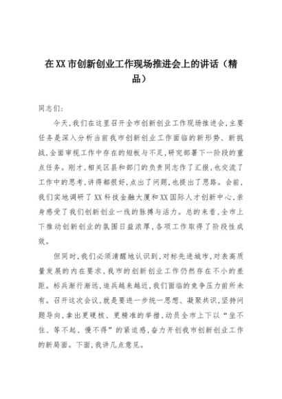 / 【七哥公文】2025年:在XX市创新创业工作现场推进会上的讲话(精品)+更多免费公文+VX:QiGeGongWen2024