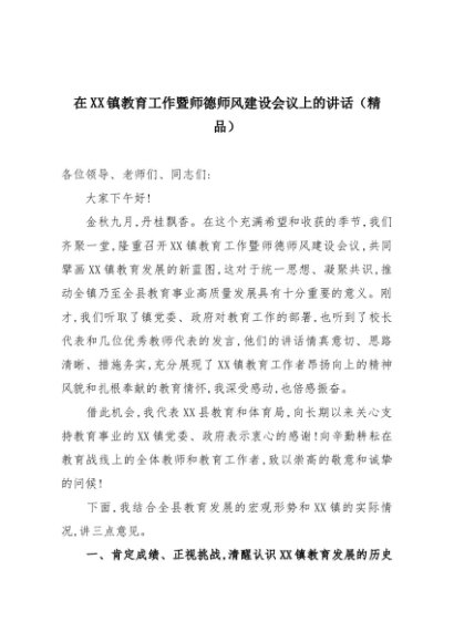 【七哥公文】2025年:在XX镇教育工作暨师德师风建设会议上的讲话(精品)+更多免费公文+VX:QiGeGongWen2024